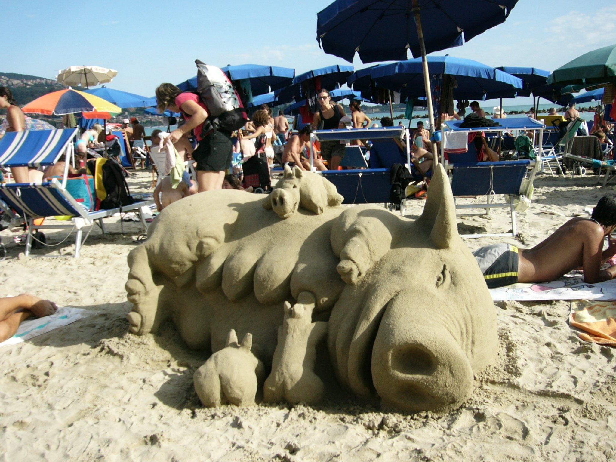 The water was clear enough to see fish swimming near the shore. My son played in the sand, sometimes running to the small swings nearby. There were sand artists too, shaping figures from the beach, little sculptures, sometimes animals, formed carefully by hand.