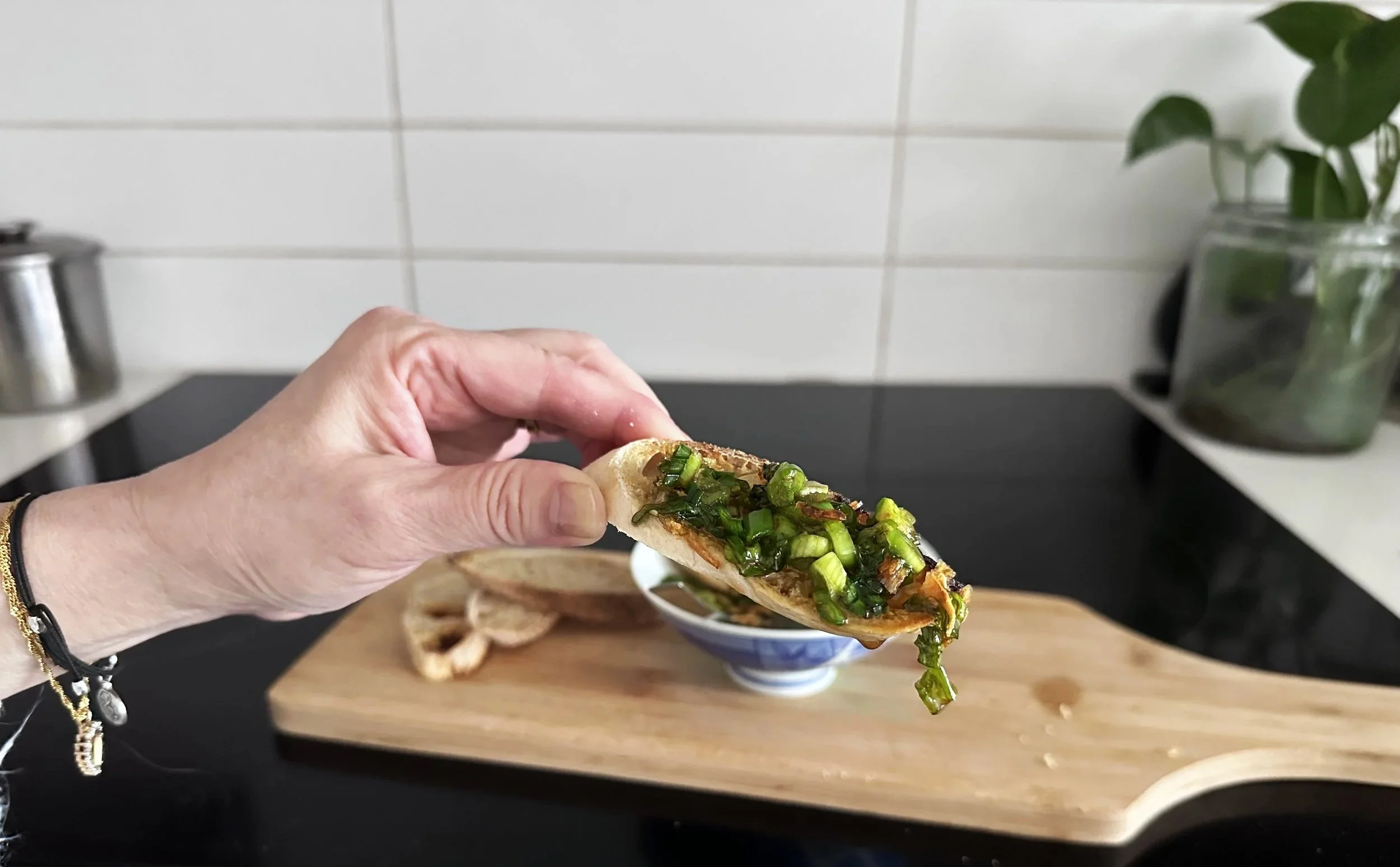 Now the tradition continues with the next generation. My son, my niece, and my nephew all get excited whenever we make this snack. It’s amazing how something so simple just toasted bread and green onions can bring everyone to the kitchen.
