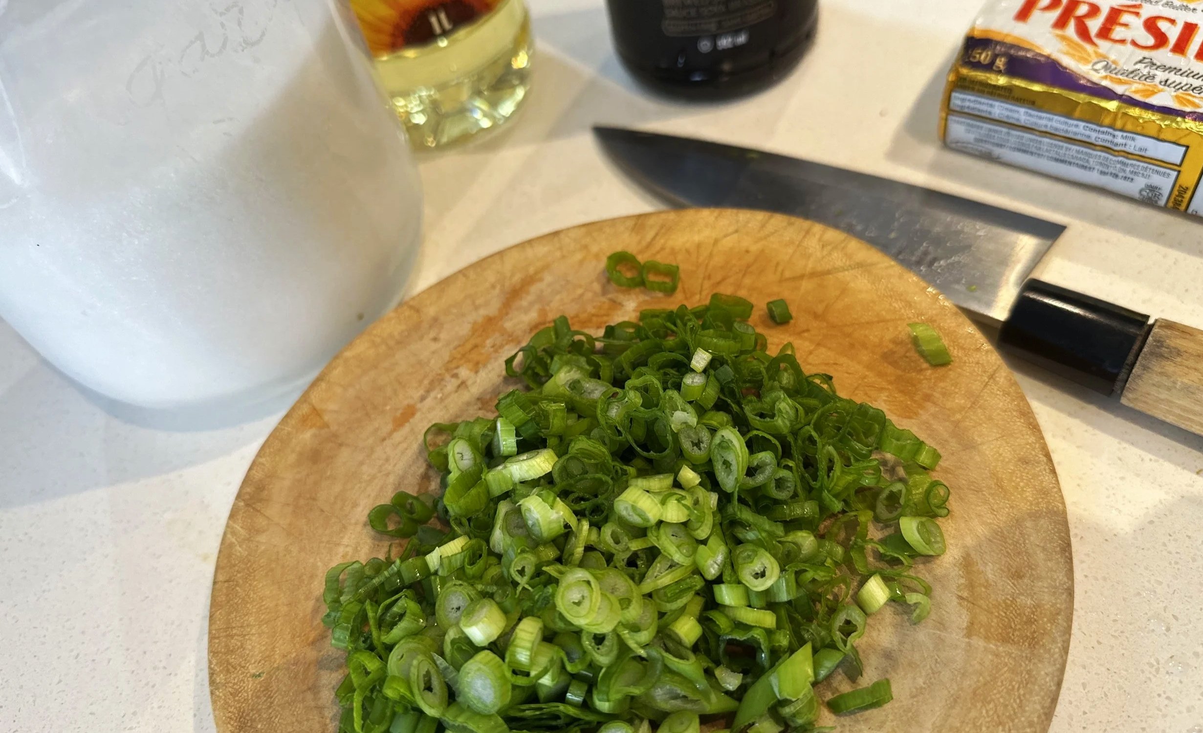 In our family, we discovered our own version without even realizing it was a street food tradition. Whenever leftover bánh mì became a little stale the next day, we toasted it and poured our green onion sauce on top.