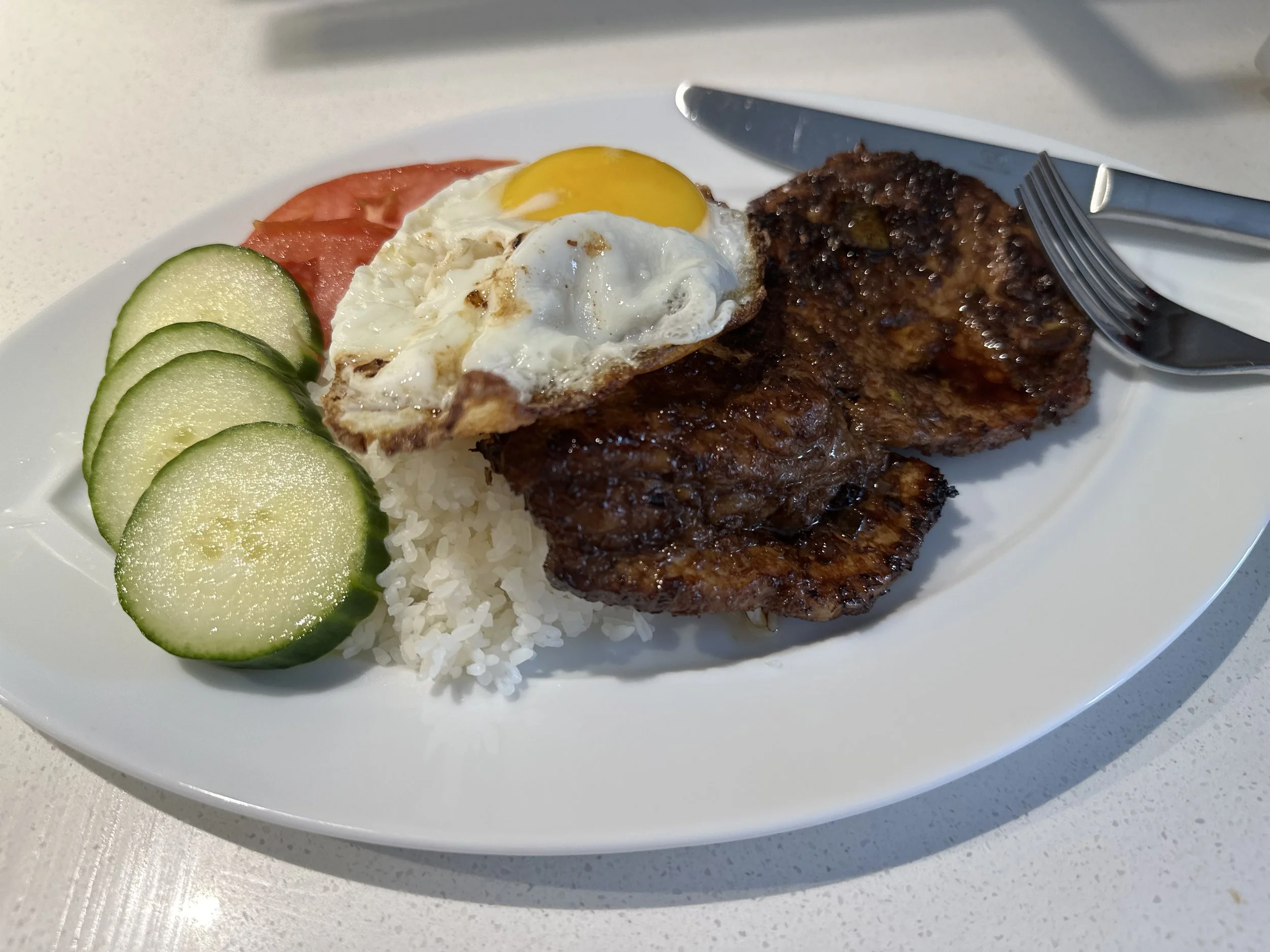 The star of the plate was always a lemongrass pork chop, fragrant and caramelized, topped with sautéed green onions. Next to it, a fried egg with golden, crispy edges rested gently over the rice.