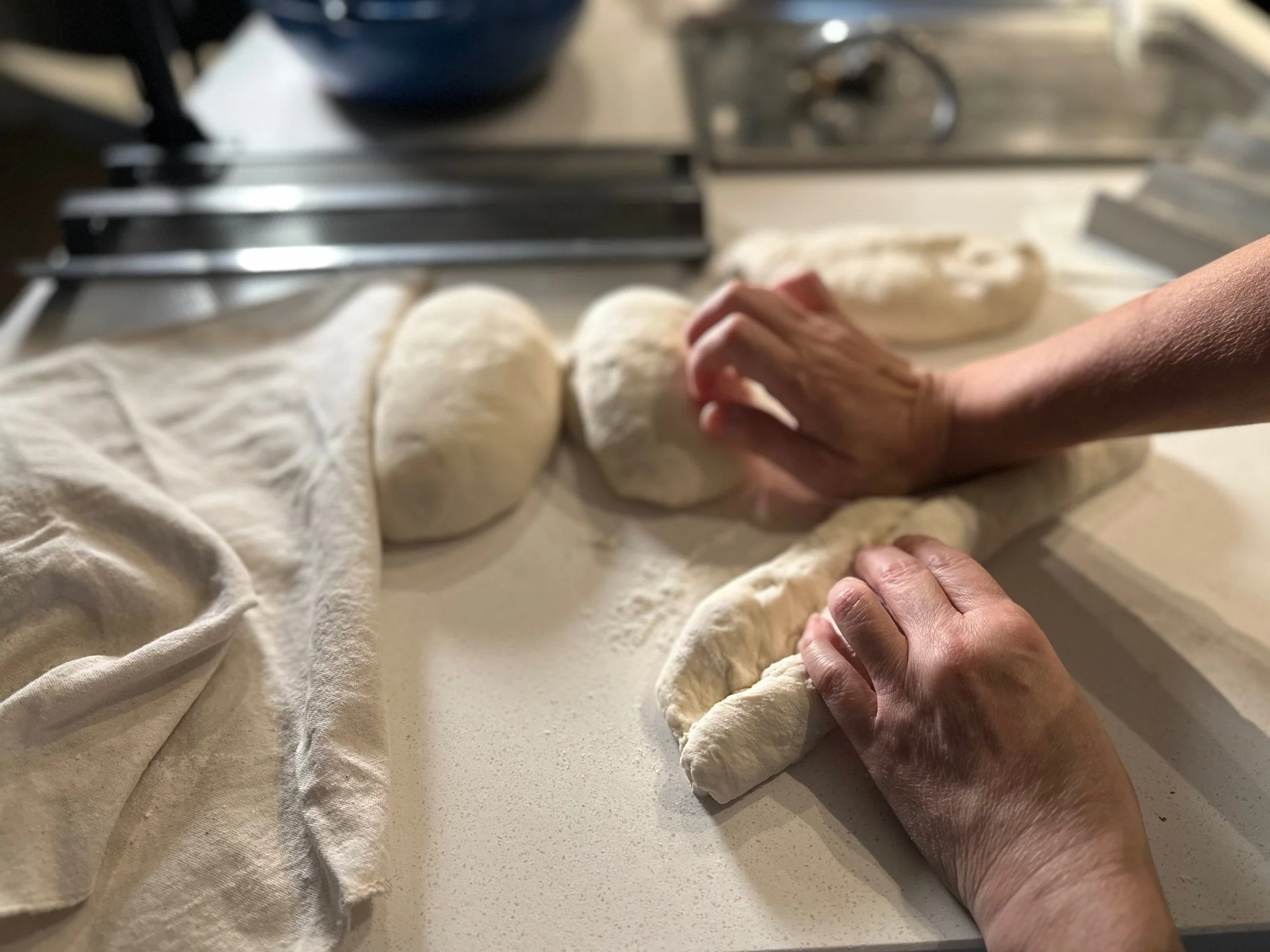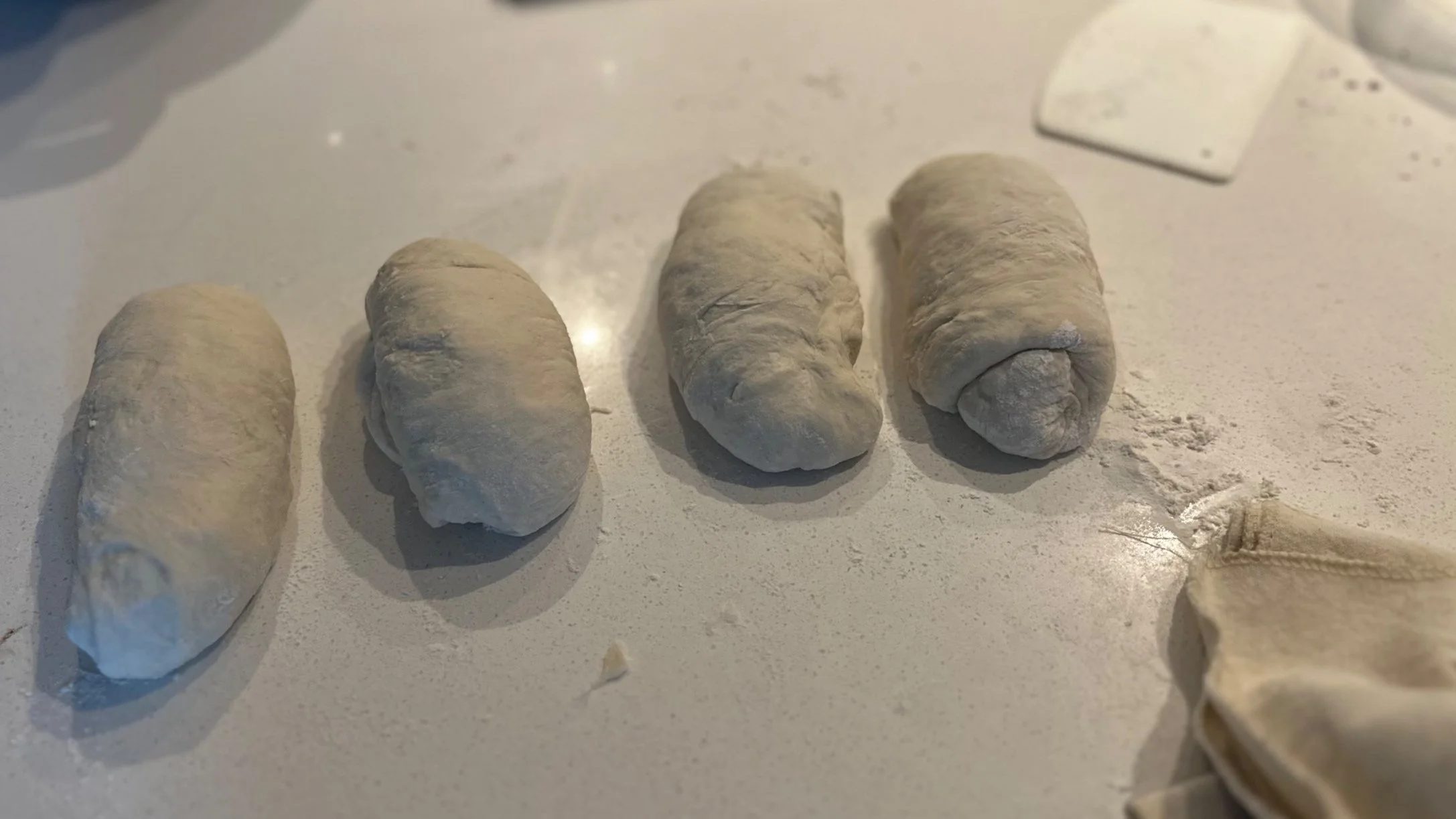 1. Divide the dough into 4 (230g) chunks