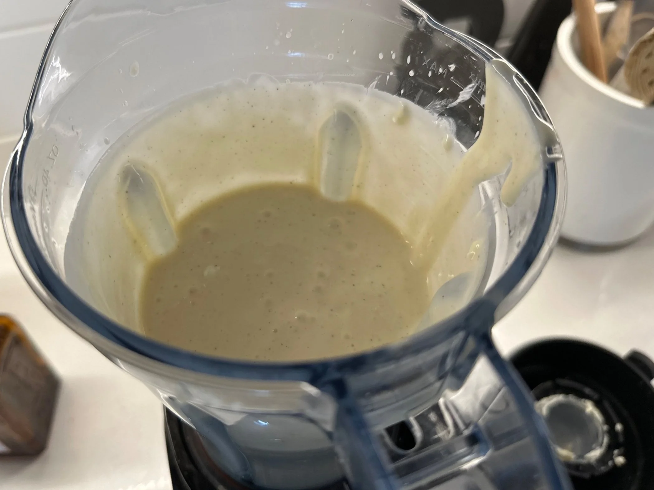 Use a blender to gradually add olive oil and blend in a portion of mascarpone cheese, which should be one-third of the total amount of mascarpone.