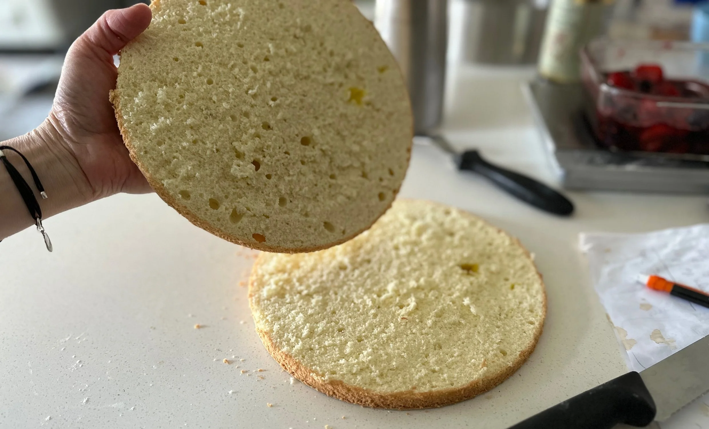 Spread the filling cream evenly and add the berries. Repeat the process.