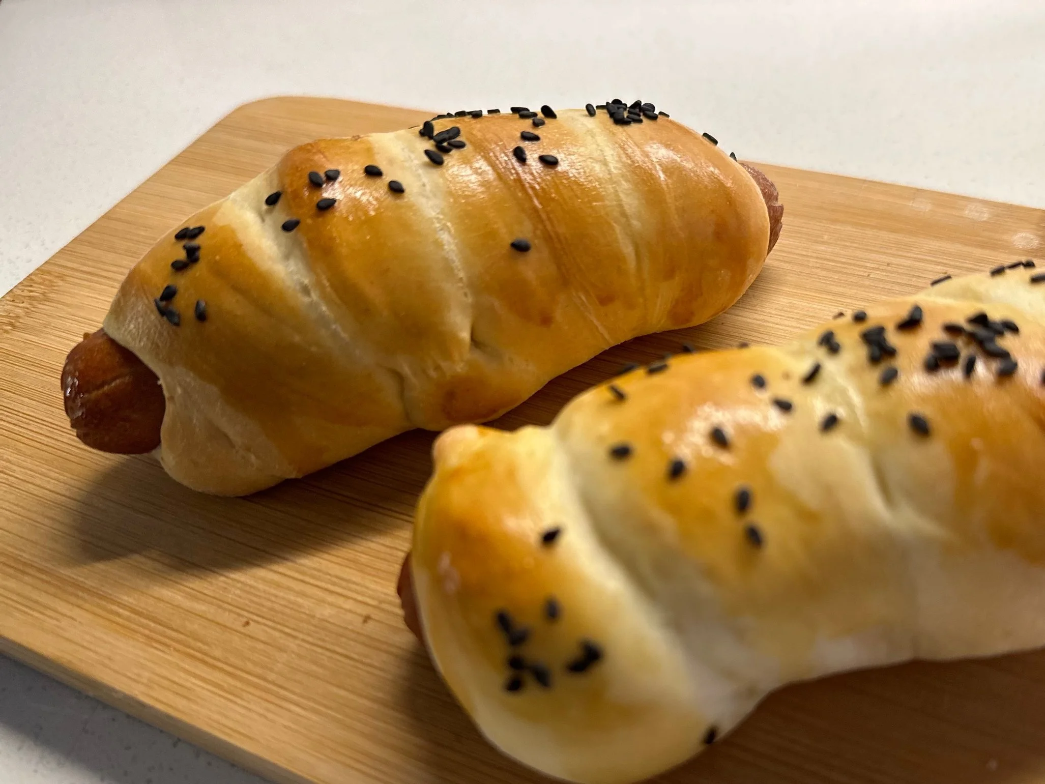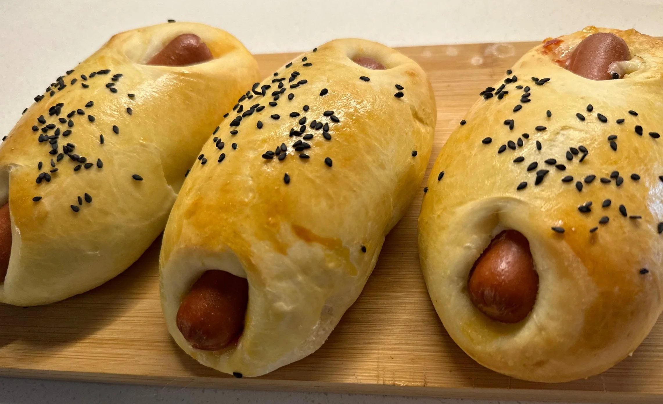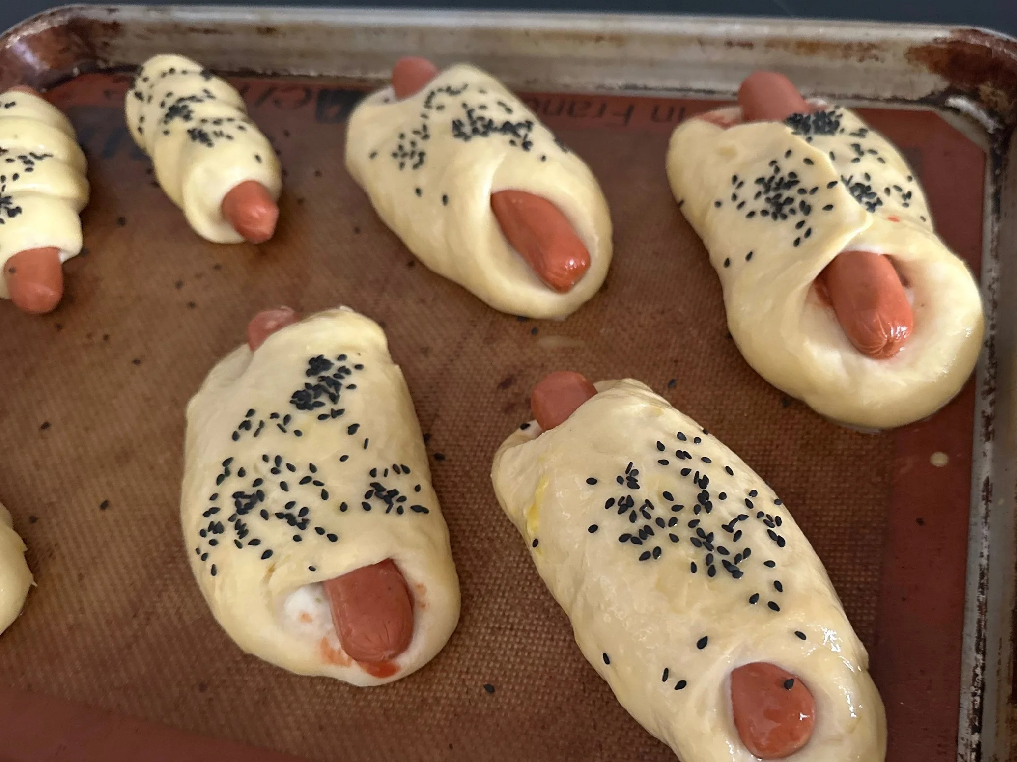 Wrap the dog, place on a tray, and proof for 40 minutes before baking.