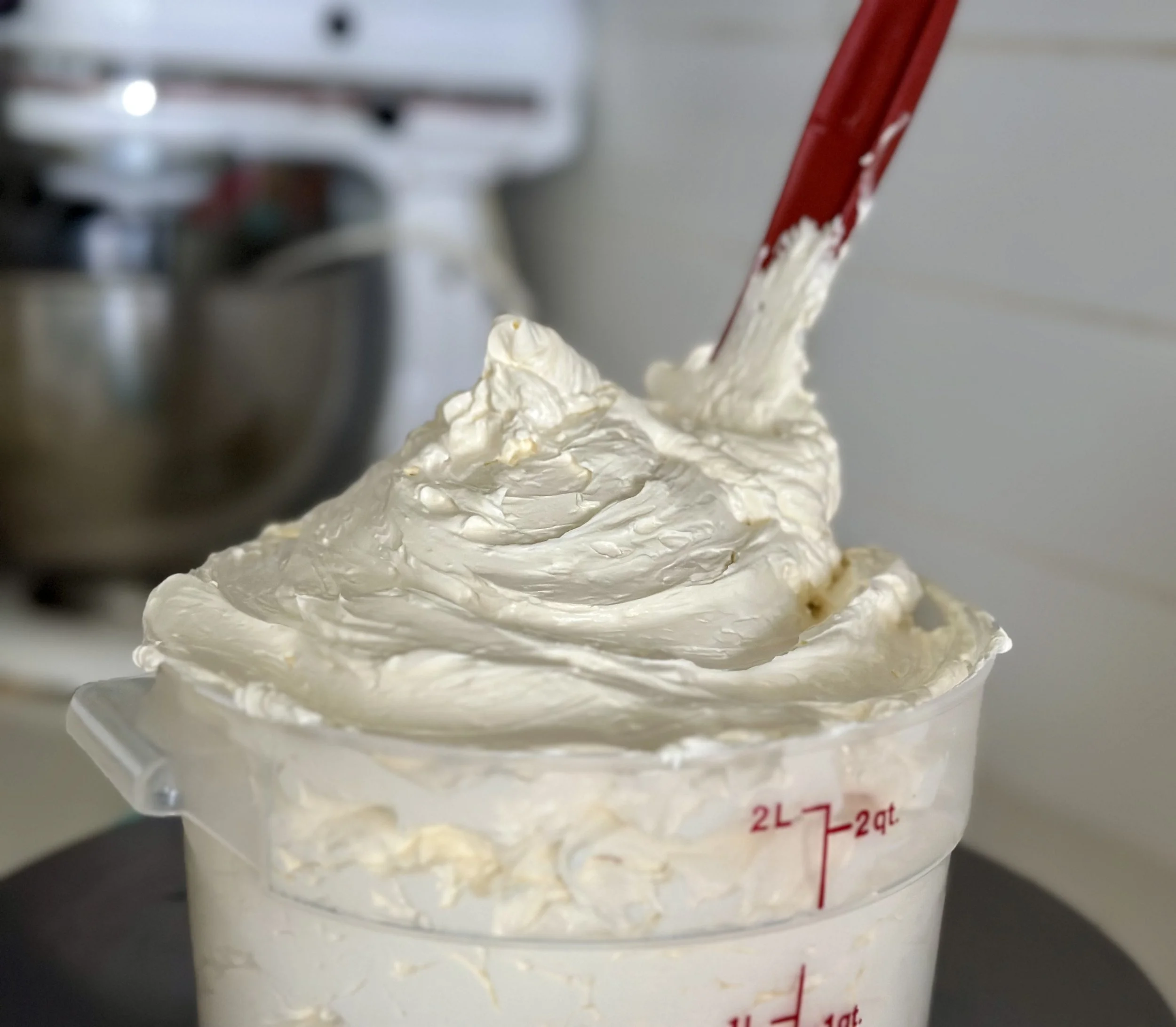 Italian meringue buttercream is a smooth, creamy frosting used in cakes and desserts. It’s made by whipping hot sugar syrup into egg whites to make a meringue and then adding softened butter until it becomes rich and silky, This type of buttercream is very stable and not too sweet, making it perfect for decorating cakes as it hold its shape well.