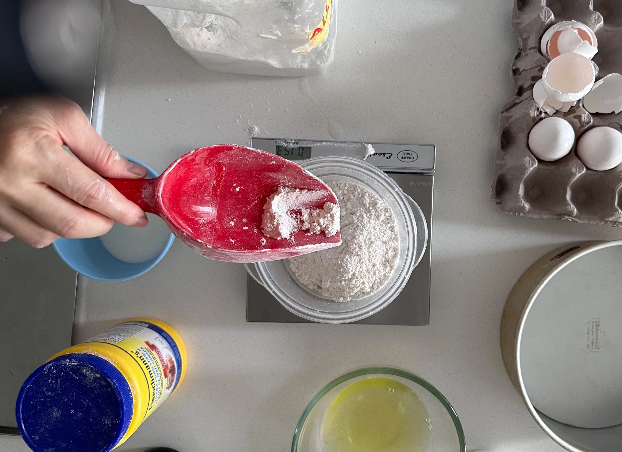 6. Gently fold in 150g of flour to the egg mixture and cornstarch until well combined.