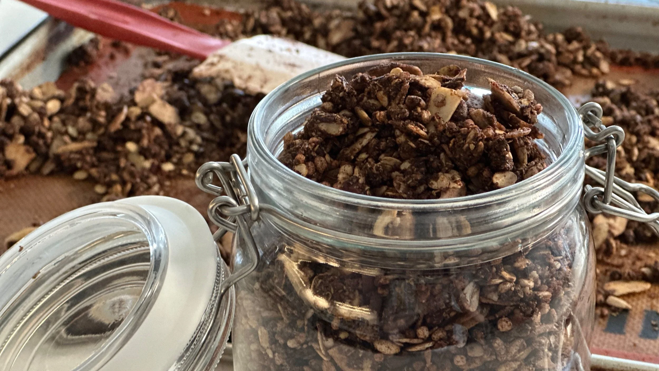 Chocolate will melt slowly into the mix and help form the crunchy granola clusters