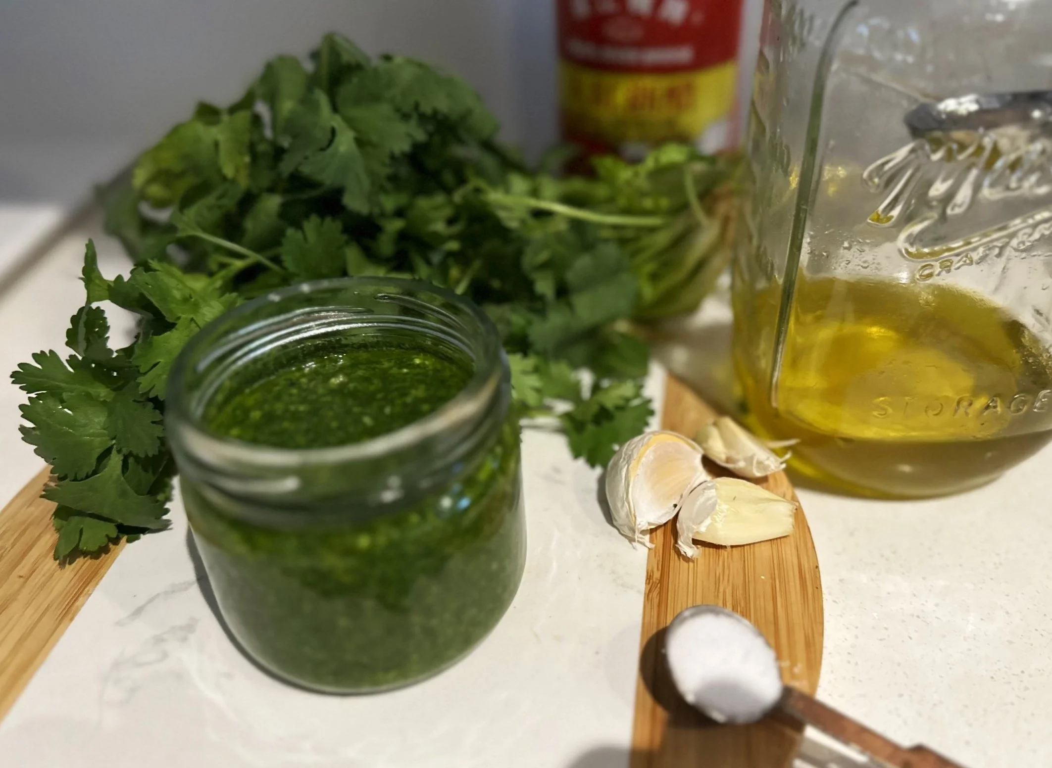 Mojo sauce with cilantro and chilli pepper