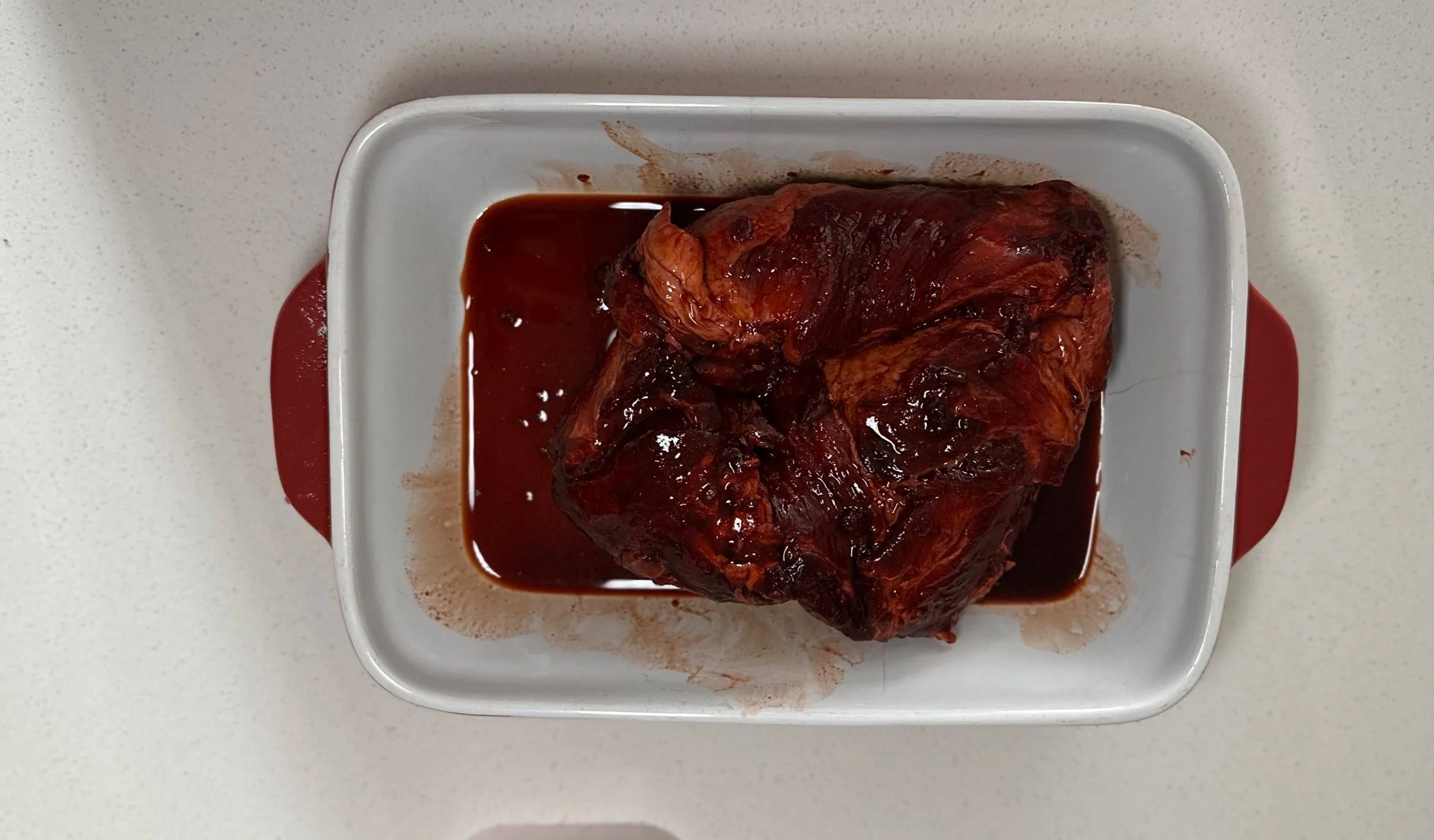 Pork shoulder after marinated overnight in the fridge
