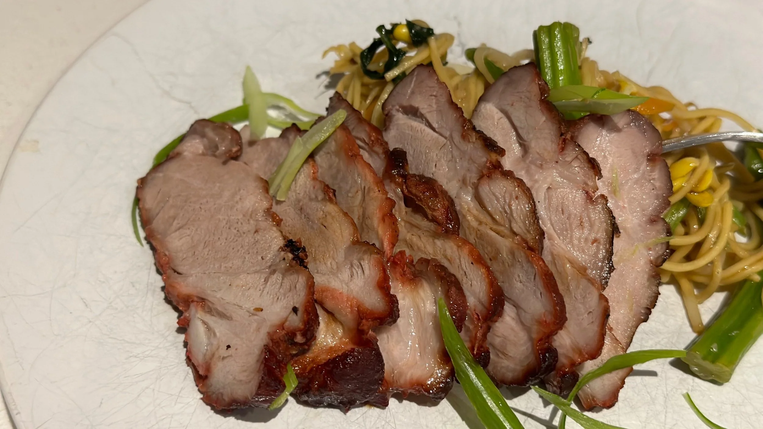 Slices BBQ with fried noodles