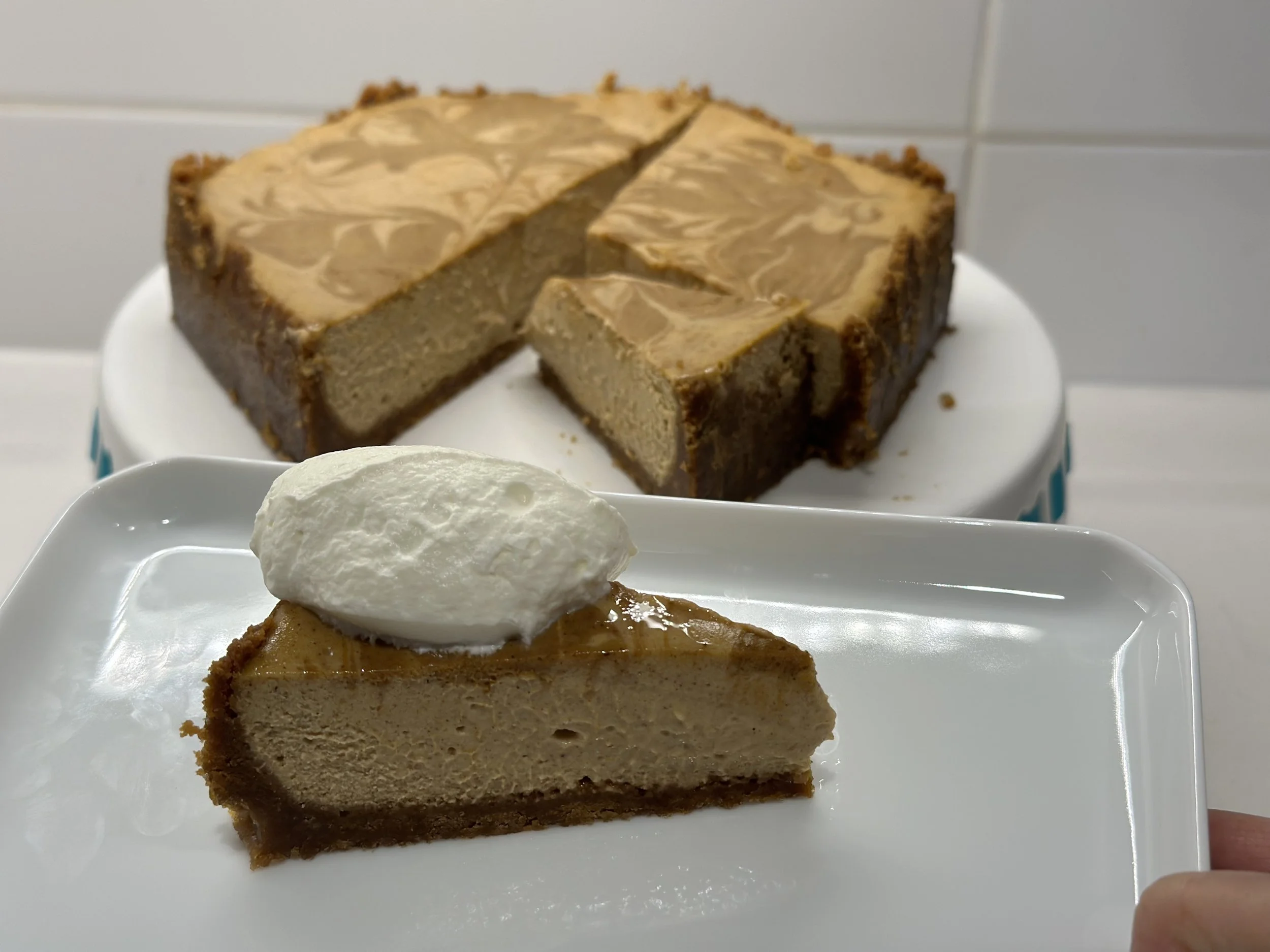 This delectable dessert is a harmonious blend of velvety cheesecake goodness and the warm, aromatic flavors of fall. With a buttery lotus crust serving as the perfect foundation, each layer is meticulously crafted to create a symphony of taste and texture. The star of the show is our creamy pumpkin-spiced filling, a luxurious concoction that captures the essence of autumn in every bite.