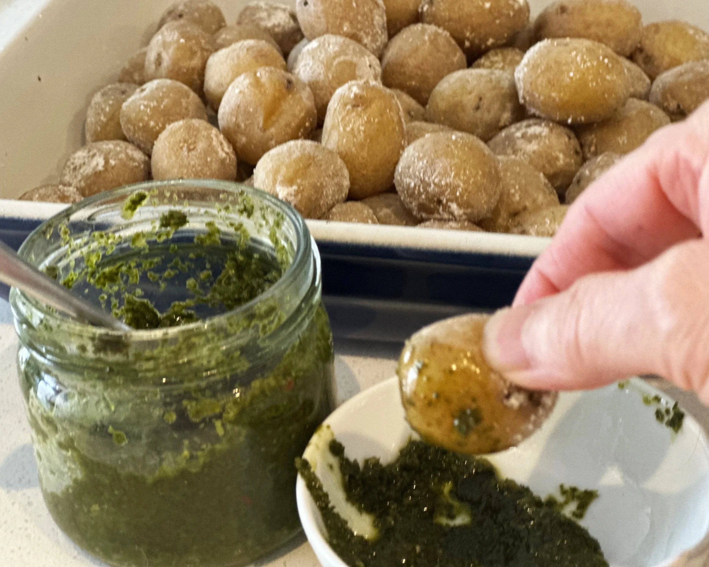 Dip potato in mojo sauce , see how to make on YouTube channel https://youtube.com/shorts/8iXH8WIb3qM