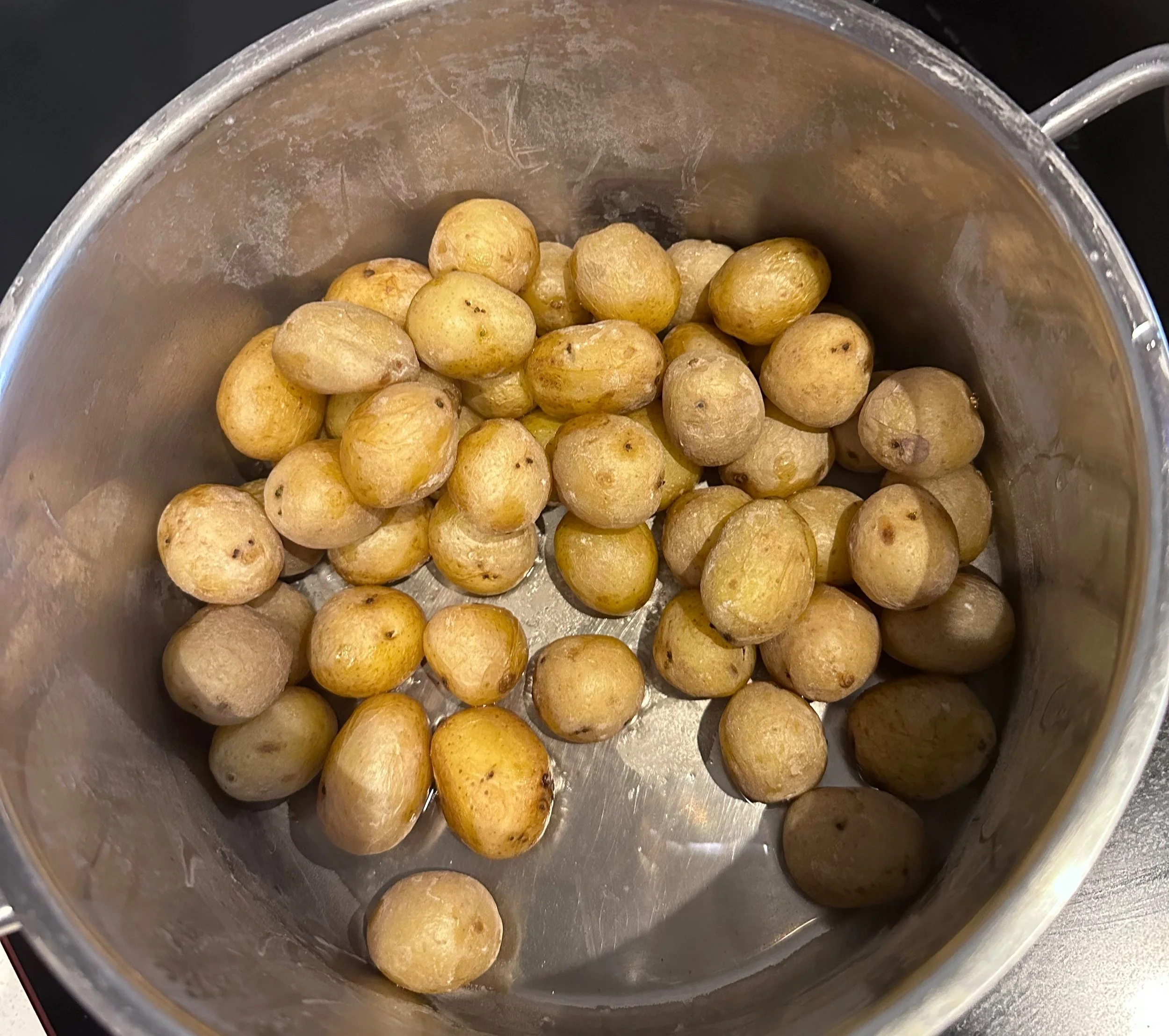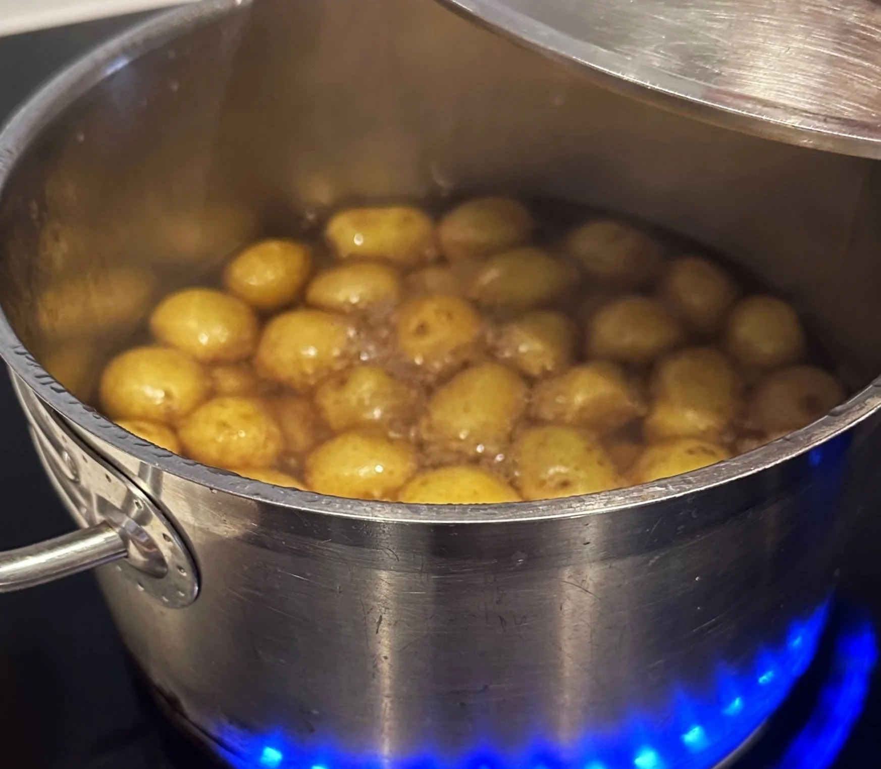 When they start to boil, put the potatoes on a slow heat until they are cooked about 20-30 minutes