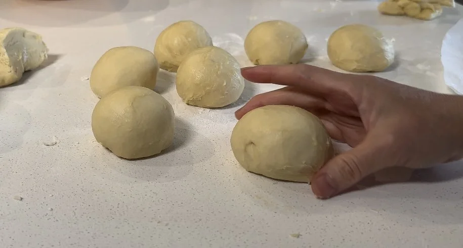 For dinner rolls, divide the dough into 6 chunks, each weighing 110g. Roll them into balls and let them proof for 40 minutes in the oven proofer with a hot water tray or at room temperature for at least 2 hours.