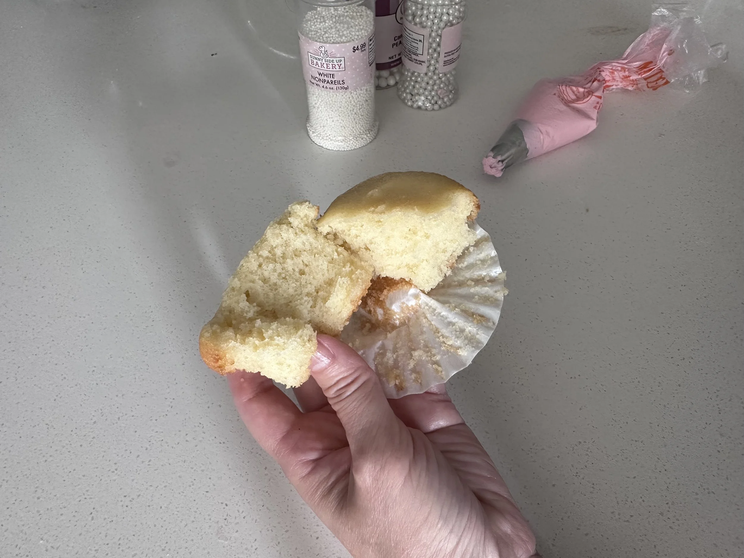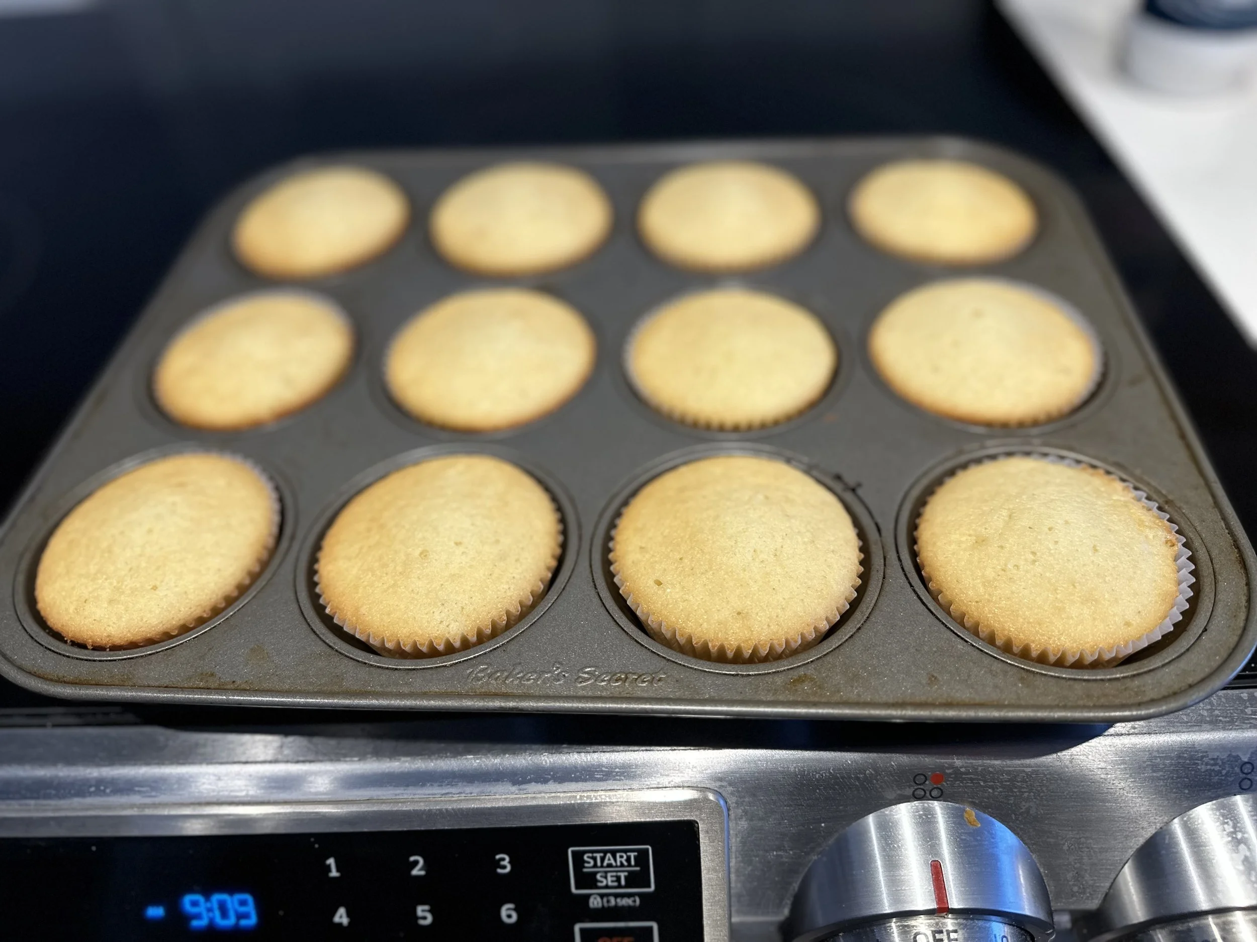 Don’t overbake: cupcakes are done when a toothpick inserted comes out clean or with a few moist crumbs